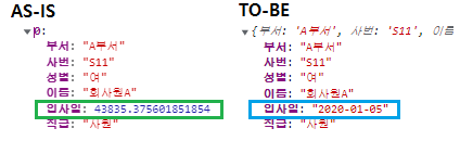 => 엑셀 파일의 데이터를 JSON 으로 받을 떄, 날짜 데이터가 다르게 입력되므로, 한번 변환해주는 펑션 추가