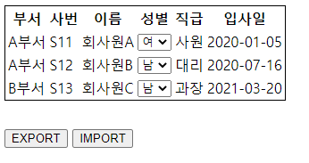 SheetJS 에서 html으로 변환하는 기본 펑션도 제공되긴 하나, 성별을 select box 로 입력 해야하므로,